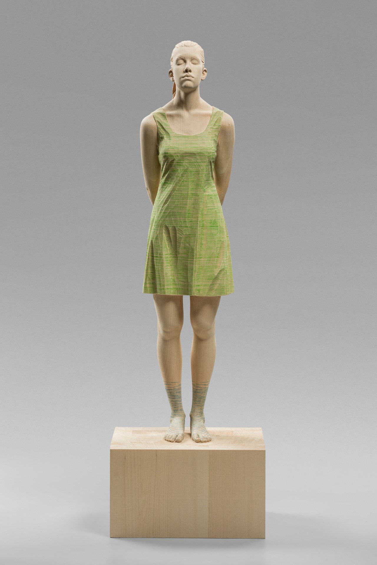 hold on / 103 x 32 x 24 cm / limewood, green and turquoise pencil / 2022